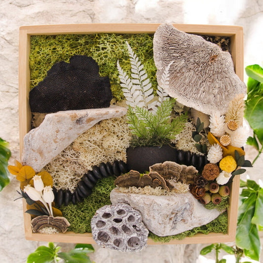 Here you will find our captivating collection of "miniature world" terrariums and wall gardens reminiscent of a walk through the woods & discovering the beauty of an enchanted forest - with the soft moss growing on trees, mushrooms dotting the trail and the surprising pops of colour in a mainly green colour scape.