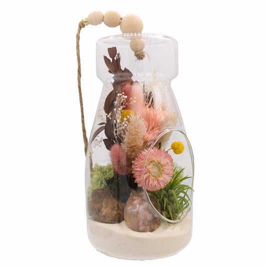 Airplant Bottle Terrarium - Flower Agate Crystal