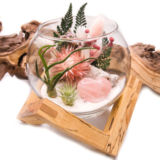 Terrarium à bol - cœur de quartz rose