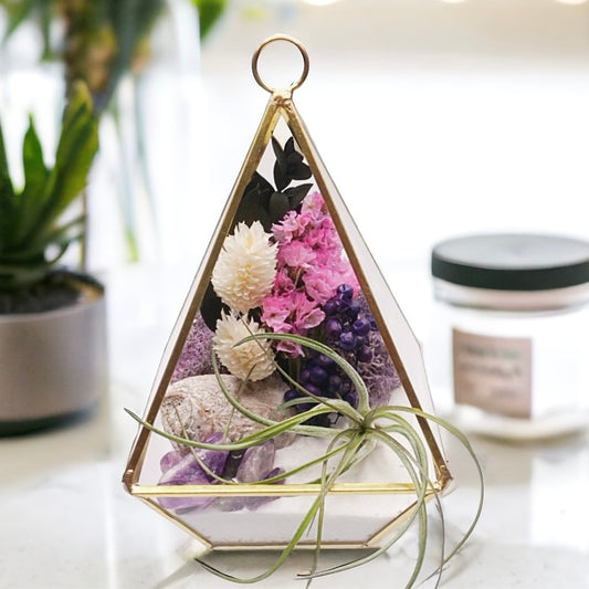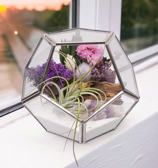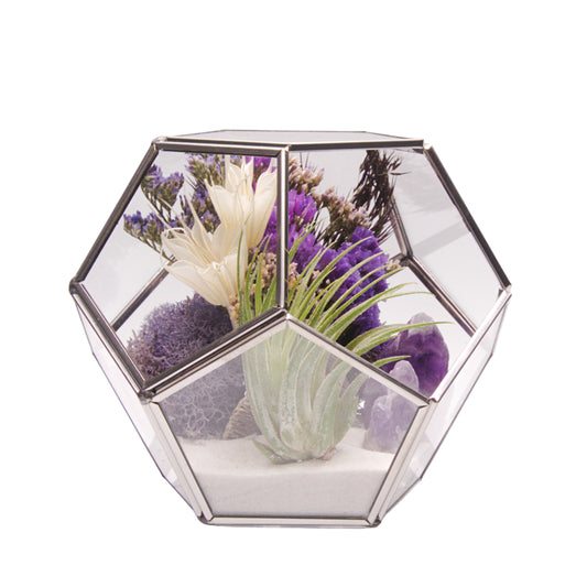 Terrarium Victorian à bol avec une plante aérienne - Cristal d'améthyst brut