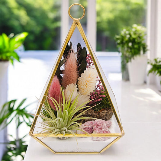Terrarium Victorien Petit avec une plante aérienne - rose