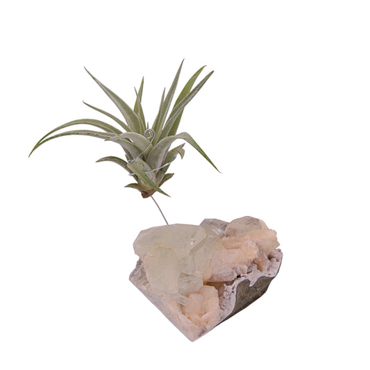 Support en Cristal d'Apophyllite avec une plante aérienne